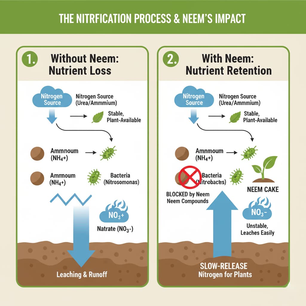 The magic of neem cake in nutrient retention lies deep within its unique organic compounds. To truly appreciate its impact, we need to understand a common enemy of soil fertility: nitrification. Nitrification is a natural process where certain soil bacteria convert beneficial ammonium (a stable form of nitrogen that plants can readily use and that binds well to soil particles) into nitrites and then into nitrates. While nitrates are also a form of nitrogen plants can absorb, they are highly water-soluble and easily leached away from the root zone with rain or irrigation. This means a significant portion of applied nitrogen fertilizer can be lost before your plants even get a chance to use it. This is where neem steps in as a game-changer. Neem cake contains potent triterpenoid compounds, such as nimbin, salannin, and azadirachtin. These compounds act as powerful nitrification inhibitors.